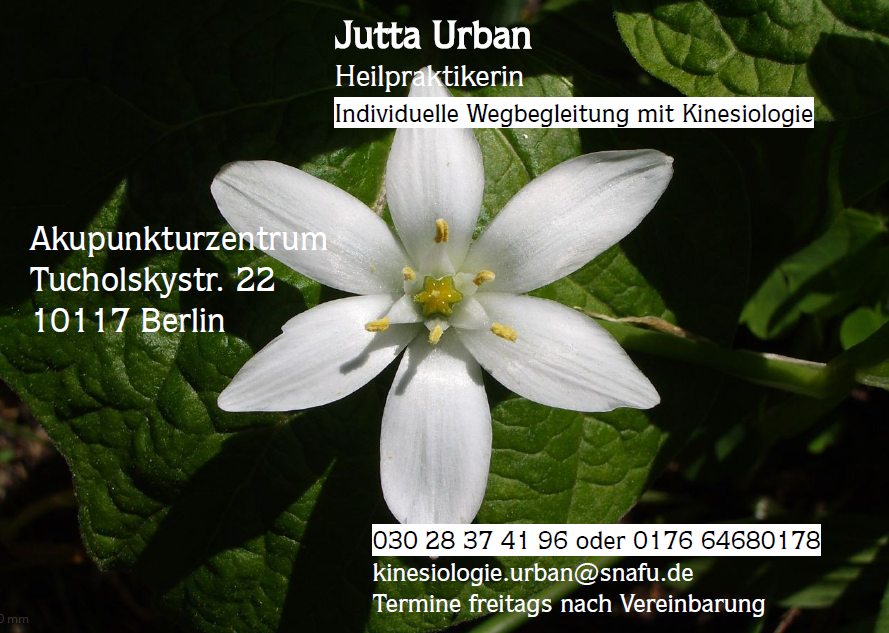 Ich praktiziere nur freitags, daher habe ich keine eigene Praxis, sondern bin Untermieterin im Akupunkturzentrum in der Tucholskystr. 22 in Berlin Mitte.
