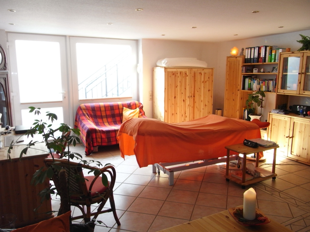 -ganzheitliche Rückentherapie: Wirbelsäulen-Basis- Ausgleich (bestehend aus: Ohrtastbefund Akupunktmassage über die Meridiande und Korrektur der Statik durch sanfte Dehnung und Schwingung auf dem Schwingkissen. Es werden Beinlängen-Differenzen, Becken, Kreuzbein und die Wirbelsäule gerichtet.